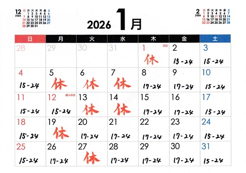 カレンダーを更新しました。